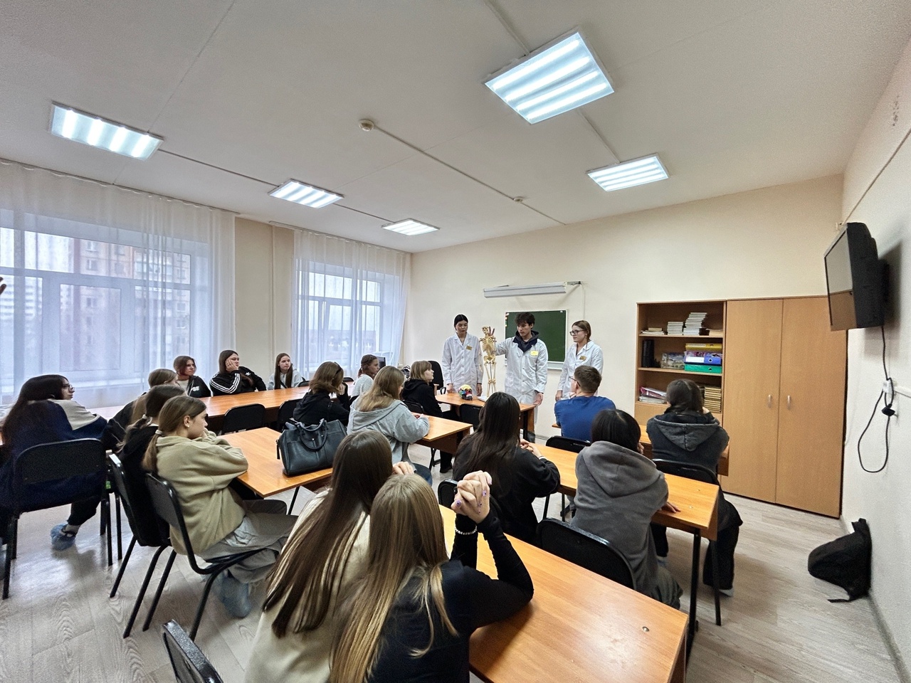 Ребята побывали в кабинетах практического обучения медицинским навыкам, погрузились в мир анатомии.