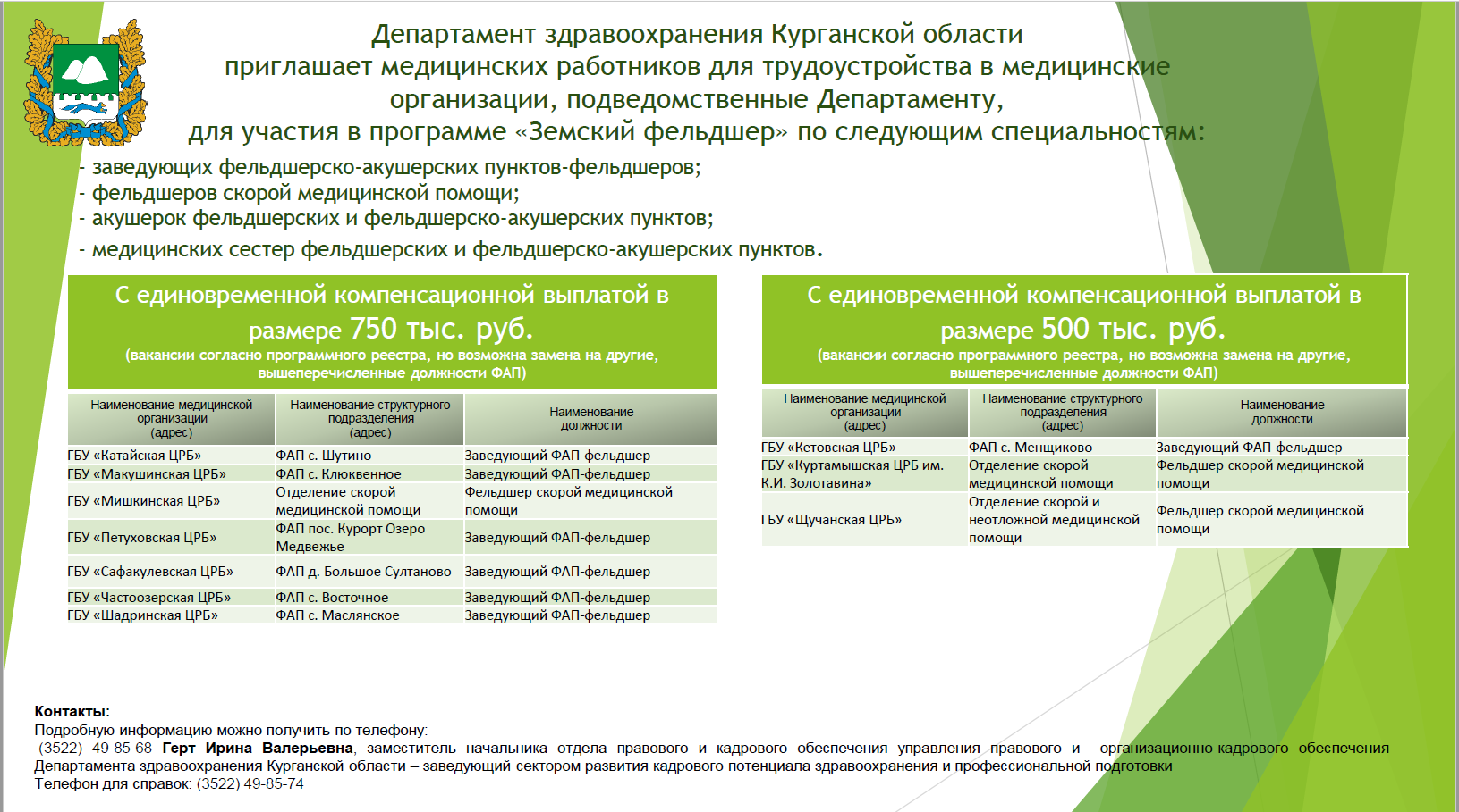 Департамент здравоохранения Курганской области приглашает медицинских работников для трудоустройства в медицинские организации, подведомственные Департаменту,