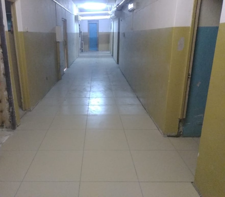 В настоящее время в больнице выполняются работы по устройству напольного покрытия на первом этаже пристроя. В правом крыле медучреждения производится облицовка стен плиткой и выполняются работы по перепланировке: осуществляется устройство перегородок.