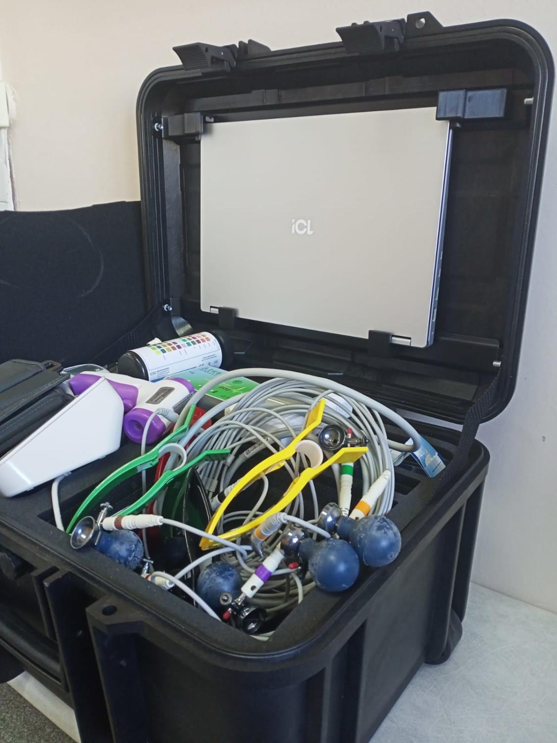 В компактном кейсе находится оборудование для определения наиболее необходимых для человека исследований. В базовый комплекс «Цифровой ФАП» входит ЭКГ, тонометр, анализаторы крови и мочи, термометр, пульсоксиметр.