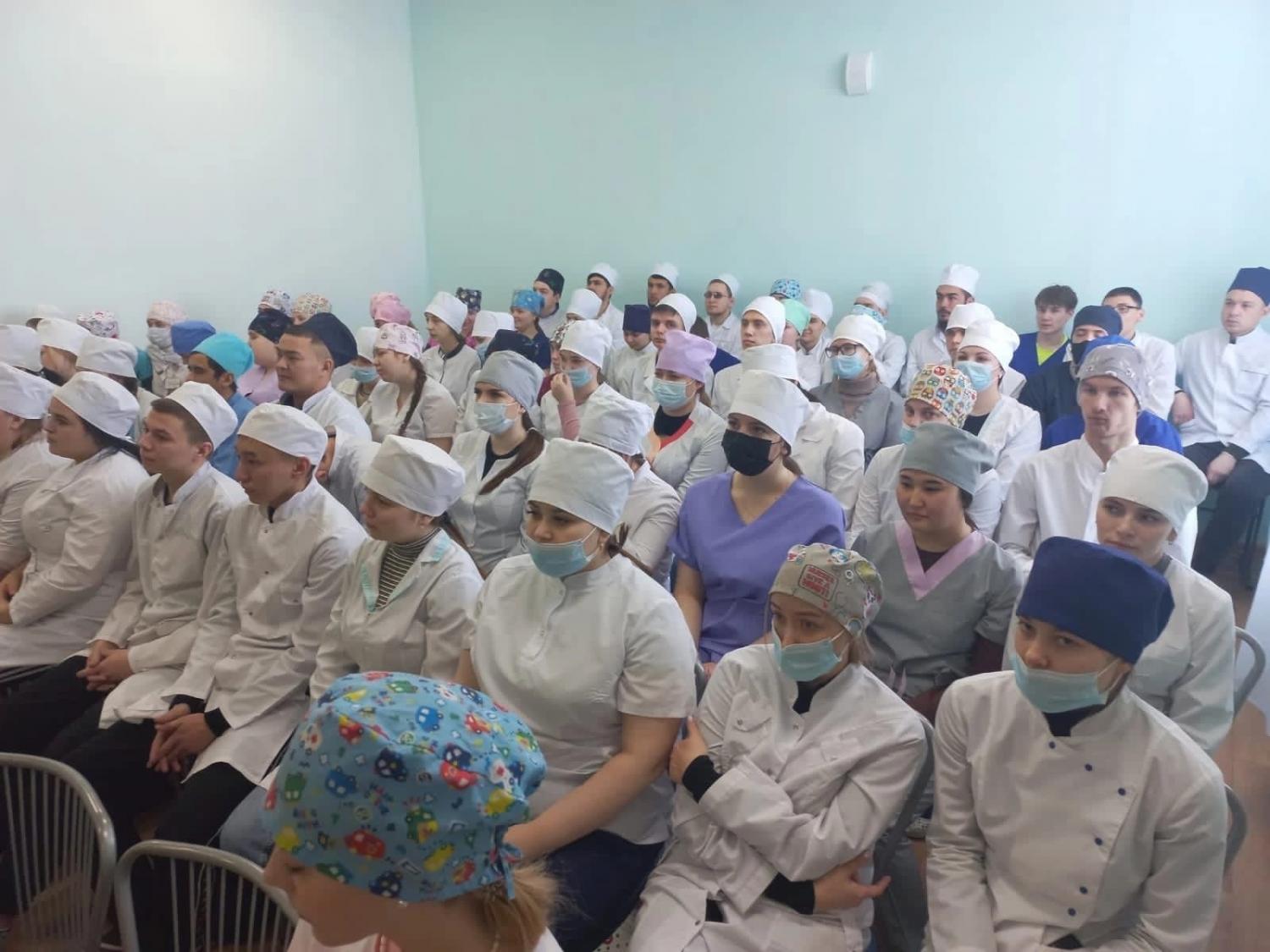 Сотрудники Курганской областной клинической больницы во главе с главной медицинской сестрой и старшей медицинской сестрой консультативной поликлиники встретились с выпускниками Макушинского многопрофильного филиала ГБПОУ «Курганский базовый медицинский колледж» с целью привлечения молодых специалистов.