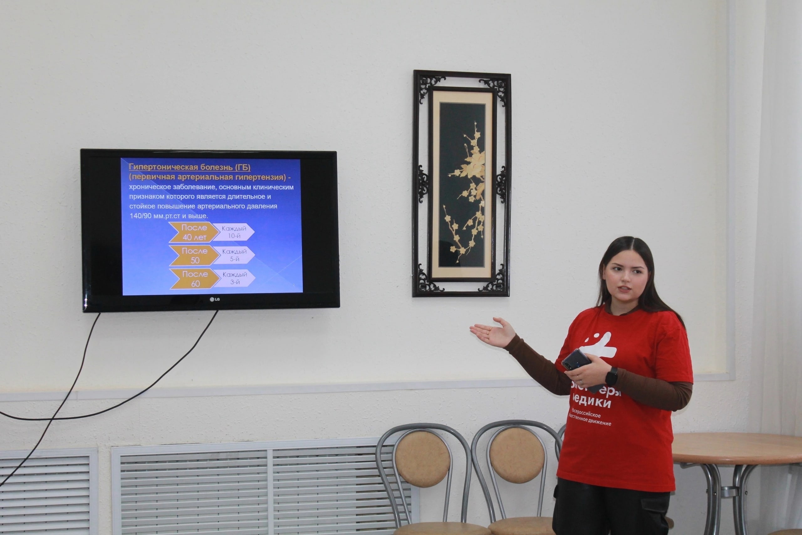 Волонтеры Искакова Вера и Набиева Эльвира (311 ЛД) рассказали о тех мерах профилактики инсульта и инфаркта, которые позволят максимально снизить риск обеих сосудистых (васкулярных) катастроф. А также научили оказывать участников встречи сердечно-легочную реанимацию.