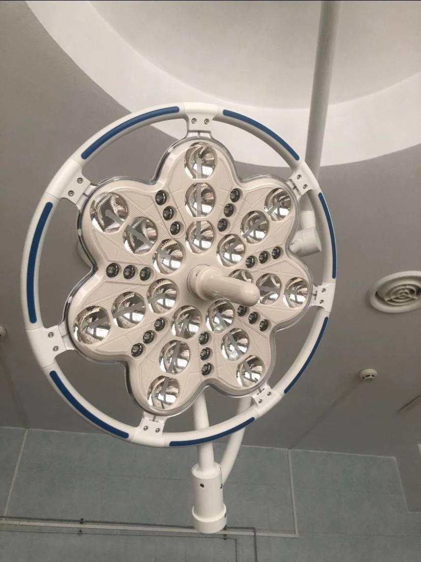 Светильник оборудован системой аварийного питания и может продолжать работу в течение 3–5 часов после отключения электричества. Это повышает безопасность операции и снижает риски для пациента.