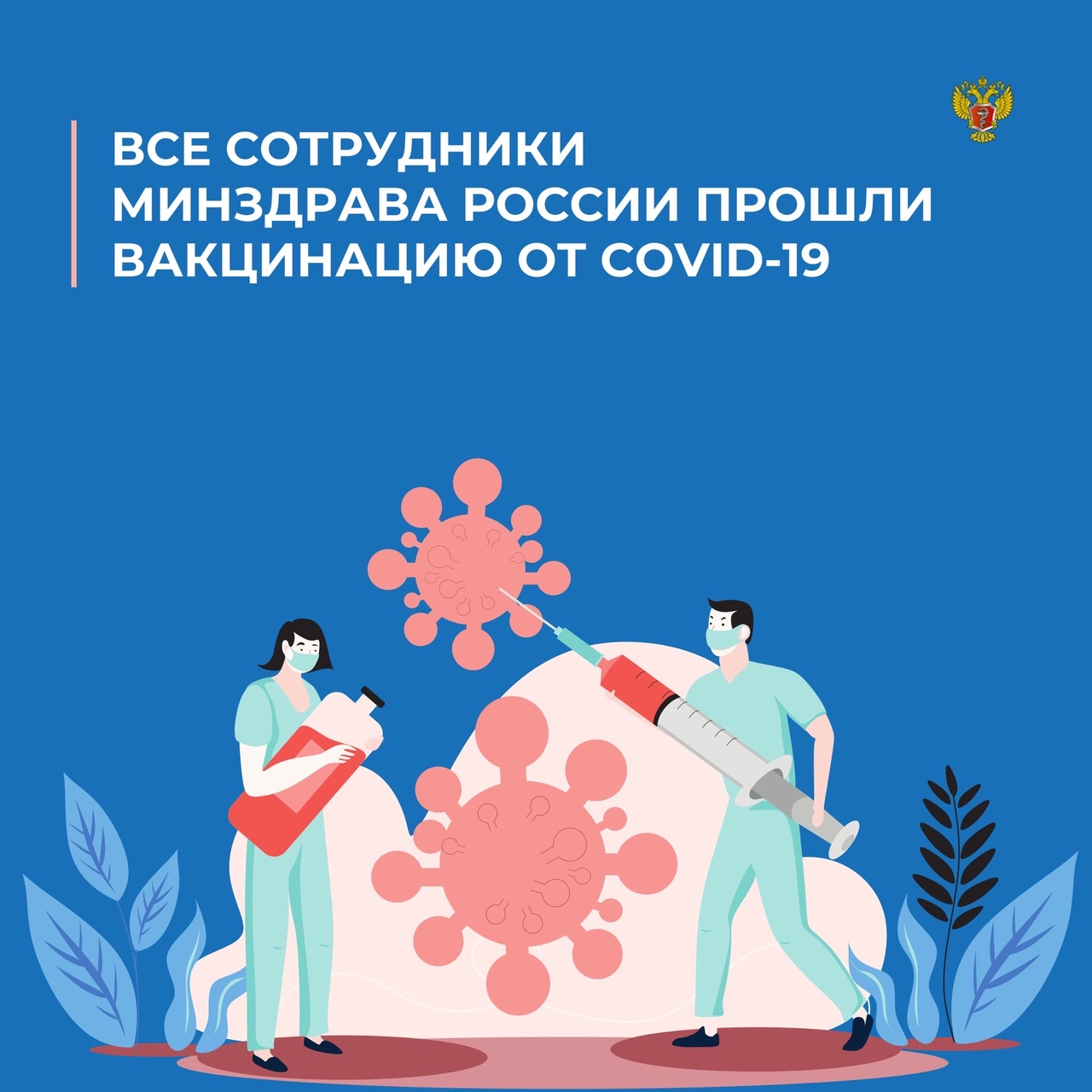 Все сотрудники Минздрава России, не имеющие медицинских противопоказаний, привиты от COVID-19